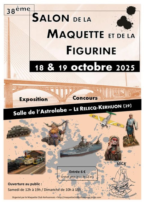 En pratique, si vous voulez participer au concours (bateaux, avions, motos, voitures, blindés, trains, figurines), il suffit de venir avec vos réalisations le samedi de 9H00 à 13H00 pour s’inscrire (gratuit pour les juniors). Règlement du concours sur notre site internet.
